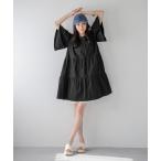 「antiqua」 半袖ワンピース ONESIZE ブラック レディース