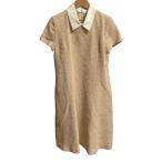 美品 FOXEY フォクシー Jessica ジェシカ ツイード 白襟 ドレス ワンピース 41449 サイズ42 ピンクベージュ レディース 古着 中古