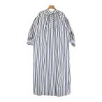【中古】エブール ebure ロングワンピース ストライプ 切り替え 七分袖 スタンドカラー ネイビー系 ホワイト 送料無料 3510300358 h1007k01734 返品可 古着 中古 ブランド古着DB