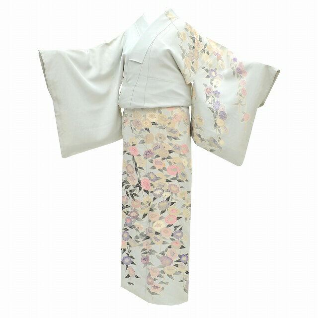 【30%OFF★在庫復活】リサイクル着物 身丈160.5cm 裄丈68.5cm リサイクル 訪問着 正絹 仕立て上がり 袷 落款付 Lサイズ Mサイズ 緑色系 花文様 特選逸品 着物リサイクル 着物 中古 帯 リサイクル 振袖 浴衣 袴 和服 古着 【中古】