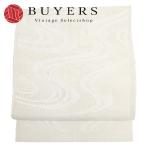 中古 名古屋帯 紗 八寸 正絹(金銀糸除く) ホワイト アイボリー 松葉仕立て 流水模様 夏物 和装 呉服 和服 きもの レディース 女性