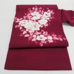 名古屋帯 優品 鳥 草花 えんじ色 正絹 中古