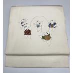 名古屋帯 八寸名古屋帯 ポリエステル 鳥の子色地に犬柄 オリジナル商品