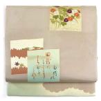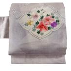名古屋帯 幅32cm 長さ368cm レディース 花柄 秋冬春用 正絹(シルク)薄茶色 難有り