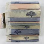 名古屋帯 秀品 樹木 縞 クリーム 正絹 中古 在庫一掃