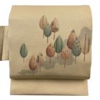 名古屋帯 優品 樹木 霞 ベージュ 正絹 中古