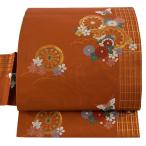 洗える名古屋帯 レンガ色 塩瀬系 草花 流れ柄 仕立上 011