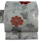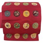 名古屋帯 草花文 鳥 赤色系 レッド系 正絹 幅約30cm 着物帯 TCS着物 W11