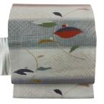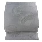 名古屋帯 優品 雪輪 草花 灰色 正絹 中古