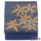 中古 名古屋帯 正絹 九寸帯 お太鼓柄 紺 植物柄 長さ339cm 幅30.5cm リサイクル 和装 普段使い おしゃれ着向き 着物 仕立て上がりリサイクル帯 即日発送