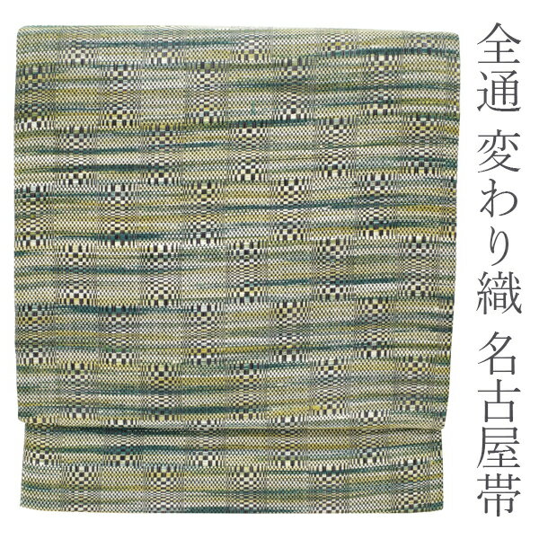 30%OFFで買えます¥32780→22946 【新品】 名古屋帯 九寸 変わり織 正絹 絹 グリーン系 マルチカラー 霞 変わり市松 全通 カジュアル 未使用 仕立て上がり みやがわ sb50334