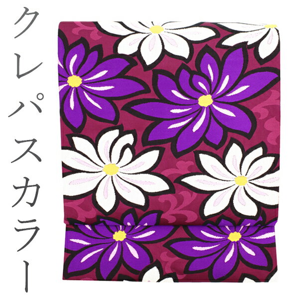 30%OFFで買えます¥27280→19096 【新古品】 名古屋帯 九寸 クレパスカラー きもの 万兵 MANHYO ワインレッド 紫 白 花 レトロ モダン カジュアル 春 秋 冬 未使用 仕立て上がり みやがわ sb50084
