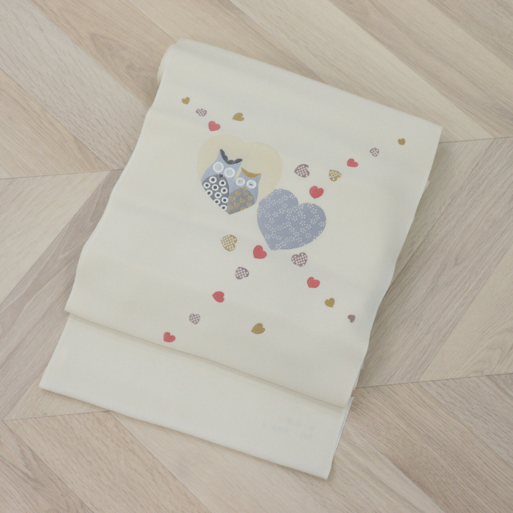 【20%OFF】生地 反物 高級浜古代 銀河 帯 仕立て 日本製 オーダーメイド ふくろう 別注 お誂え クリーム系 イエロー 黄色 梟 フクロウ 鳥 九寸名古屋帯 九寸帯 なごや 浜ちりめん 縮緬染め帯 未仕立て お仕立て代別