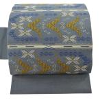 美品 名古屋帯 逸品 証紙あり 読谷山花織 草木染 紬 菱 幾何学模様 読谷山花織 灰色 正絹 中古
