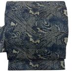 美品 名古屋帯 逸品 玉那覇有公 夏帯 琉球びんがた 荒磯 紺色 麻 中古