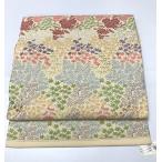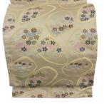 中古 名古屋帯 正絹 クリーム地に草花文様 九寸 六通柄 あすつく