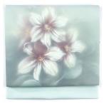 名古屋帯 幅30cm 長さ367cm レディース 花柄 秋冬春用 正絹(シルク)水色 やや難 塩瀬