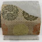 名古屋帯 名品 菱 草花 金銀糸 灰色 正絹 中古 在庫一掃