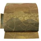 美品 名古屋帯 優品 風景 草花 金糸 箔 金色 正絹 中古