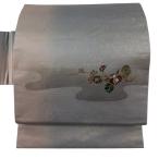 名古屋帯 優品 雪輪 草花 灰色 正絹 中古