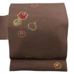 美品 名古屋帯 優品 八寸名古屋帯 鳥 草花 茶色 正絹 中古