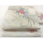 平和屋着物◎九寸名古屋帯 草花文 正絹 逸品 AABC9043uk
