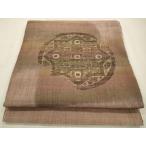 名古屋帯 幅31cm 長さ356cm レディース 連続模様 秋冬春用 正絹(シルク)茶色 美品