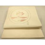 平和屋着物◎九寸名古屋帯 手描き 白椿 正絹 逸品 BAAV7056yc