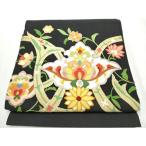 平和屋着物●アンティーク 大正ロマン 九寸名古屋帯 能面 舞桜文 黒地 金銀糸 正絹 逸品 CABB0591hy