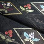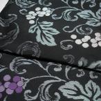九寸名古屋帯 ぶどう文 藍下黒 正絹 未仕立て 西陣織