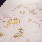 九寸名古屋帯 染帯 宝尽くし 灰桜色 友禅 正絹 塩瀬 未仕立て