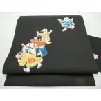 平和屋着物●東京友禅 熊谷好博子 塩瀬 九寸名古屋帯 童子遊び 黒地 正絹 逸品 CABE0136hy