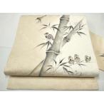 平和屋着物●九寸名古屋帯 作家物 手描き 笹竹鳥文 雀 猫 金彩 正絹 逸品 CABE0250hy