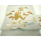 平和屋着物●創業130年 江戸染繍友禅 大彦 九寸名古屋帯 刺繍 流水風景文 鬼しぼ縮緬 金銀糸 正絹 逸品 DABB4693ps
