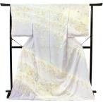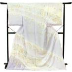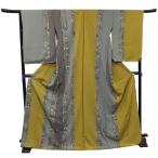 正絹訪問着 未仕立て 仮絵羽 渋からし・グレーストライプ更紗模様