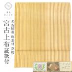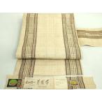 リサイクル 名古屋帯 宮古上布 芋麻 九寸 美品 仕立て上がり ベージュ色系 縞文様 全通柄 証紙あり 植物染料 紬地 uu1004b