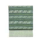 知念紅型研究所 知念冬馬 本場琉球びんがた名古屋帯 月桃 グリーン 伊那紬 九寸名古屋帯 紅型 帯 紬地 女性用 レディース