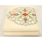 平和屋着物●本場筑前博多織 八寸名古屋帯 更紗花唐草文 象牙色 金糸 正絹 逸品 DAAY0340ob