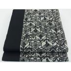 平和屋着物●本場筑前博多織 八寸名古屋帯 横段抽象文 黒地 正絹 逸品 DABB7359op