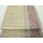 平和屋着物●本場筑前博多織 八寸名古屋帯 立涌横段文 生成り色 正絹 逸品 DAAV9031ob