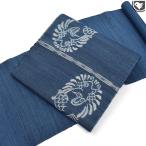 夏帯 名古屋帯 本大麻帯 和染紅型 栗山吉三郎 本麻 昼夜 斜め 更紗 藍色 九寸帯 染帯 仕立て上がり カジュアル お洒落 上品 シック KKO26 r981 Si