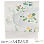 名古屋帯 博多帯 博多織 帯 八寸 白 花草 協和織工場 正絹 仕立て上がり