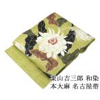 夏帯 名古屋帯 本大麻帯 和染紅型 栗山吉三郎 本麻 花 更紗 白 グレー 九寸帯 染帯 仕立て上がり カジュアル お洒落 r980 Si