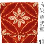 名古屋帯 未使用 木綿 九寸 南部絞り 茜染 岩手県 草紫堂 茜色 絞り柄 花七宝 綿 極上 カジュアル 新古品 仕立て上がり みやがわ sb55097