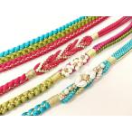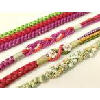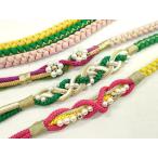 平和屋着物▼和装小物 帯締め3本セット 振袖用 飾り付き パール 花 黄色 緑 石竹色 金糸 逸品 CABC0845ju