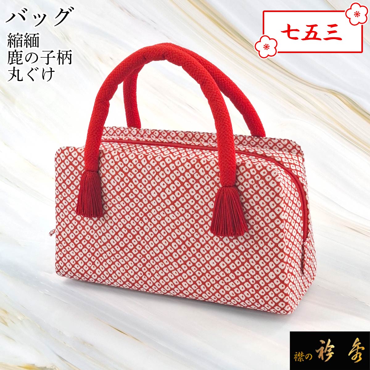 《20%OFF》衿秀 公式 バッグ 和装 着物 ばっぐ bag 七五三 利休 小さめ ミニ 丸ぐけ 鹿の子 縮緬 ちりめん 赤 撚り房 正絹 日本製 和装小物 和小物 えりひで 襟の衿秀