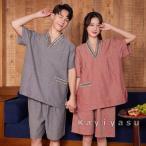 甚平 パジャマ 作務衣 メンズ レディース ガーゼ 通気性 甚平 上下セット ルームウエア ナイトウエア 普段着 夏 浴衣 ペアルック 前合わせ 前開き 上下セット