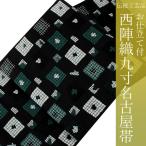 名古屋帯 正絹 西陣織 木原織物謹製 仕立て付き 九寸 なごや帯 六通 黒 緑 白 格子柄 証紙付き 女性 レディース 着物 和装 和服 新品 日本製