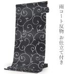 雨コート 反物 着物用 レインコート セミオーダー 仕立て付 XS S M L XL 黒 縞 唐草 ハナエモリ コート 和装 和服 女性 レディース 撥水加工 送料無料