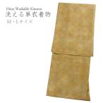 洗える着物 単衣 小紋 M L 仕立て上がり 単品 からし 花菱七宝 女性 レディース 和装 和服 きもの 春 秋 カジュアル 普段着 ポリエステル 送料無料